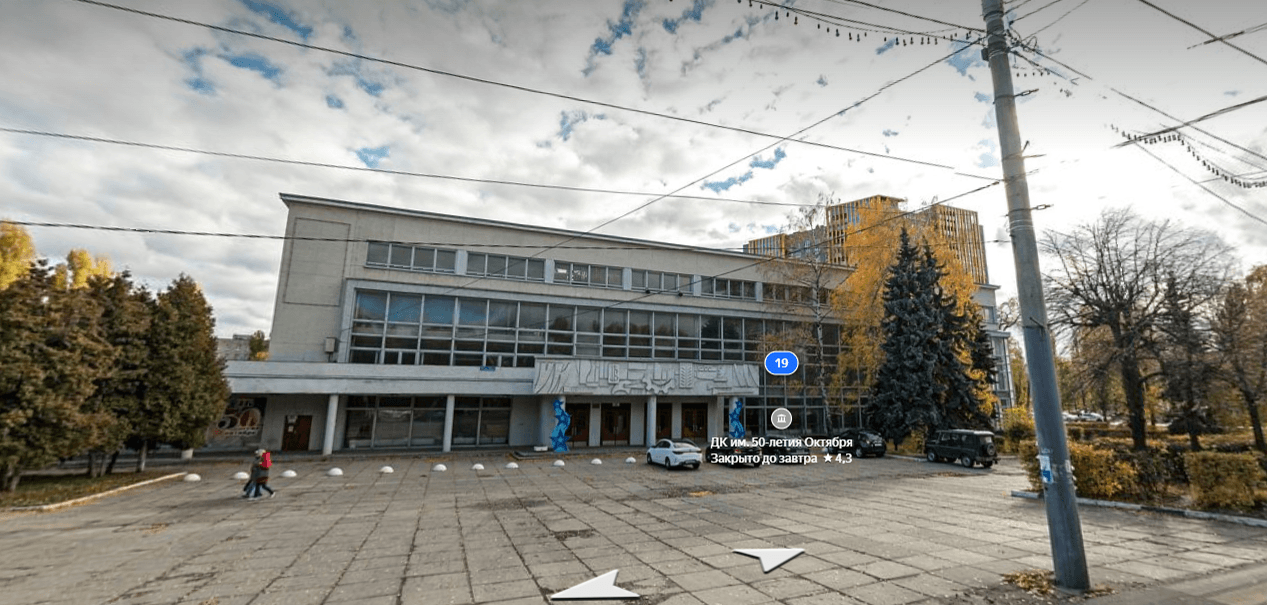 Дом культуры имени 50-летия Октября построили в 1967 году. Здание принадлежало Государственному космическому научно-производственному центру имени Хруничева. В июле 2021 года ДК выкупила компания «Аксиома» за 509 млн рублей. Через месяц в здании демонтировали масштабную космическую мозаику. В конце марта 2022 года мэрия Воронежа предложила горожанам определить дальнейшую судьбу мозаики.