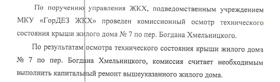 Ответ управления ЖКХ на запрос УК по состоянию крыши. Документ предоставлен управляющей компанией.