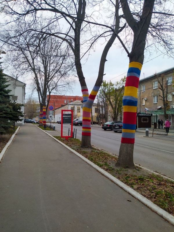 Деревья в разноцветных чехлах заметили воронежцы на улице Текстильщиков. Соответствующие фотографии опубликовали в соцсетях.