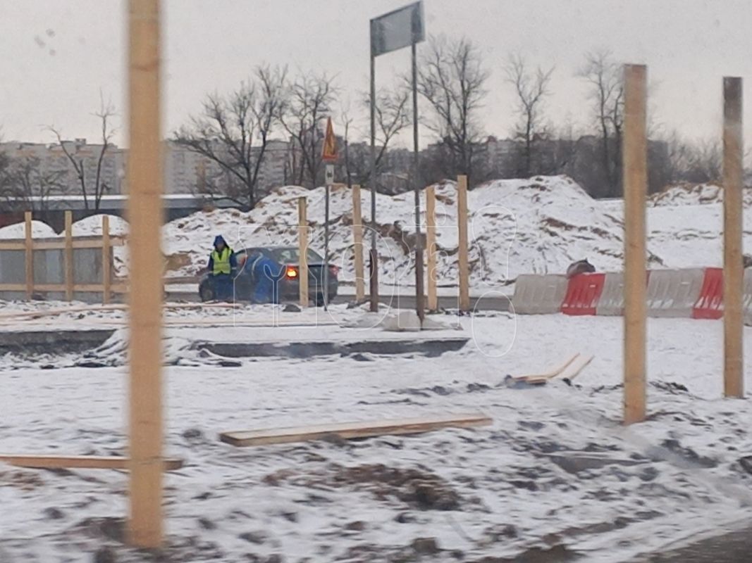 — На площадке развёрнут строительный городок. Заходит тяжёлая техника, — рассказал воронежец. — И кстати, про знак пешеходного перехода, который пока скрыт плёнкой: судя по всему, рядом с ним и будет находиться вход на стройплощадку.