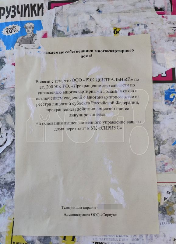 Корреспонденты «МОЁ! Online» позвонили по телефону, указанному в объявлении, и попали не на администрацию «Сириуса», а на специалиста по работе с населением. Женщина рассказала нам, что УК, в которой она работает, не вешала подобные объявления — это происки конкурентов, которые решили выжить с рынка «новичка». Об этом говорит несовпадение её должности с указанной в документе, а также то, что она на ближайшие полгода прикована к больничной койке из-за перелома позвоночника и не могла заниматься составлением и распространением объявления.