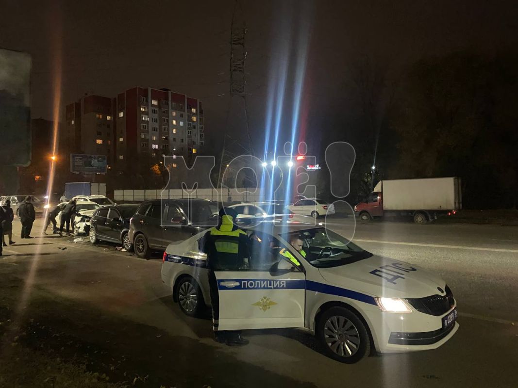 Авария произошла сегодня вечером, 11 ноября. Автомобили столкнулись паровозиком. Скорее всего, первый водитель не выдержал безопасную дистанцию. По словам очевидцев, никто не пострадал.