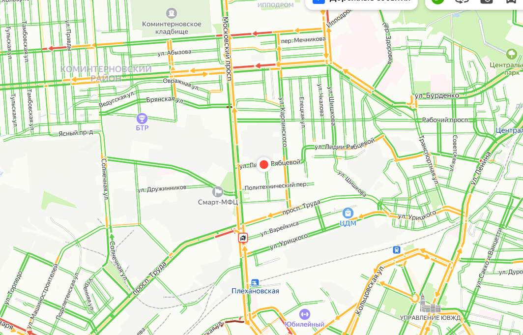 Но судя по сервису «Яндекс. Карты», на дорогах пробки в 3 балла.