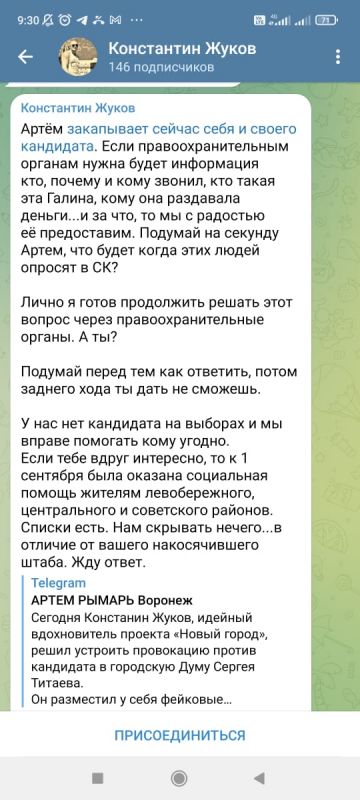 В соответствии с последней модой противоборствующие стороны на уровне местных действующих депутатов, представителей партийных структур, руководителей общественных ассоциаций и прочих известных личностей выясняют отношения на страницах телеграм-каналов, которые дают относительную анонимность. Так, представляющий в городском парламенте фракцию партии «Справедливая Россия» Артем Рымарь или кто-то за него, но в канале его имени, обрушился с критикой на руководителя общественной ассоциации «Новый город» Константина Жукова за нечистоплотные, по его мнению, методы ведения предвыборной кампании. Жуков, в свою очередь, также через именной телеграм-канал, адресовал ряд претензий кандидату в депутаты самовыдвиженцу Сергею Титаеву, обвиняя последнего в тех же грехах.