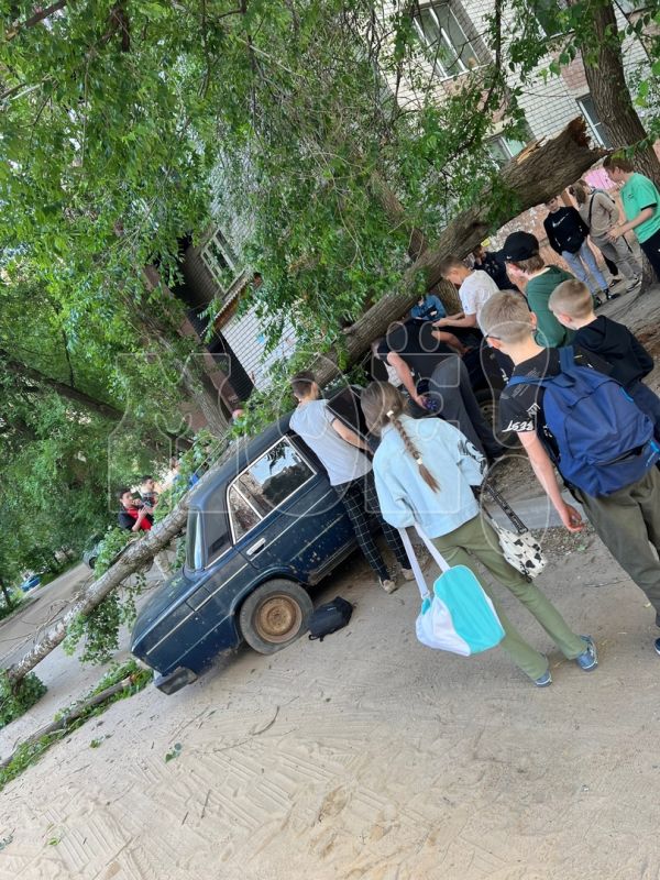Массивный ствол дерева рухнул на припаркованный автомобиль в понедельник, 5 июня, в Коминтерновском районе. Фото с места происшествия в редакцию «МОЁ! Online» прислала читательница портала.