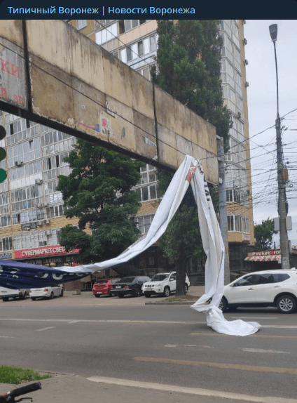 Сильный ветер повалил деревья и сорвал дорожные знаки в Воронеже