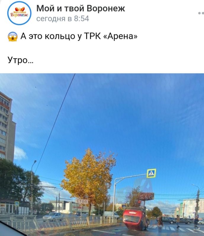 Легковушка перевернулась на крышу у торгового центра «Арена» в Северном микрорайоне Воронежа, сообщил в редакцию «МОЁ!» народный корреспондент.