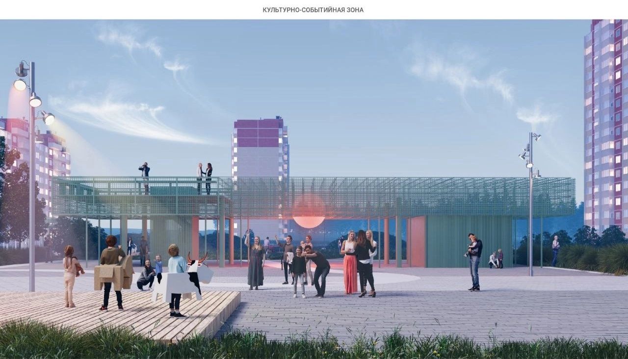 Концепция мегадвора, созданная проектным бюро М4 совместно с жителями города, предполагает создание зоны активного и спокойного отдыха с уже существующим участком соснового леса. По проекту будут установлены различные горки, качели, навесы, настилы, можно будет поиграть в настольный теннис, позаниматься на снарядах для воркаута, пройти полосу препятствий. «Фишками» проекта станут передвижной амфитеатр, смотровая площадка, домик на дереве.