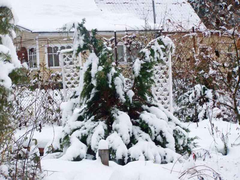 Первый же обильный снегопад радует владельцев сада: теперь-то у растений