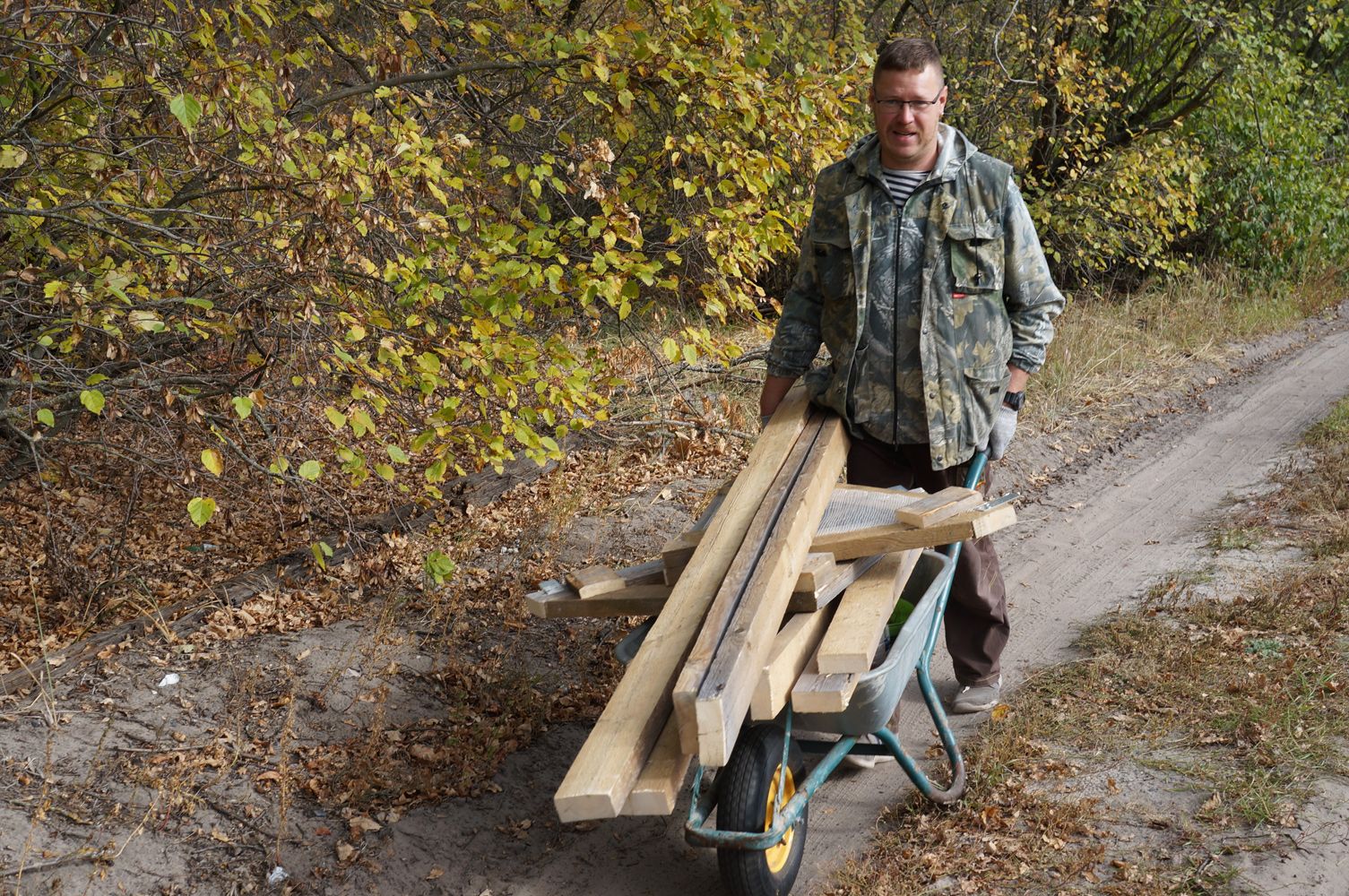 Ему всё интересно и до всего есть дело. Вот, например, как начинается его утро в заповедной деревеньке. Берёт пакет из супермаркета, специальную палку-хваталку и топает к реке. По дороге собирает мусор. Ежедневный моцион. Когда приехал сюда, окружающий лес был больше похож на помойку. Люди не заморачивались: кидали всё подряд куда придётся. Теперь в округе чисто. Мы заглянули за кусты — ни тебе бутылок, ни хлопающего на ветру целлофана.