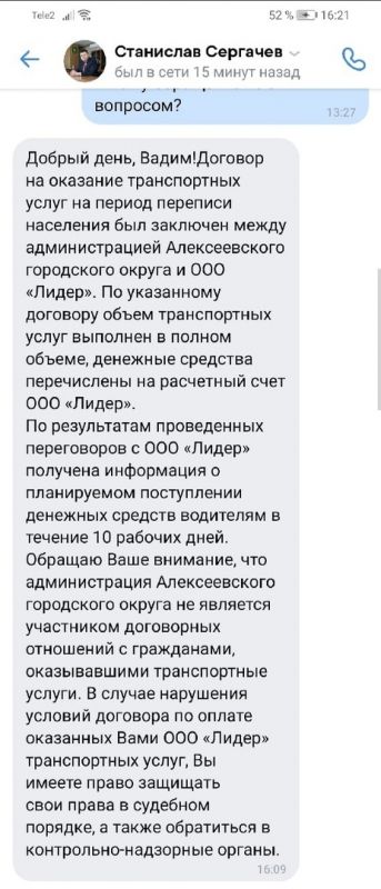 В комментариях читатели поделились своей перепиской с главой Алексеевского городского округа. Диалог произошёл в конце ноября.