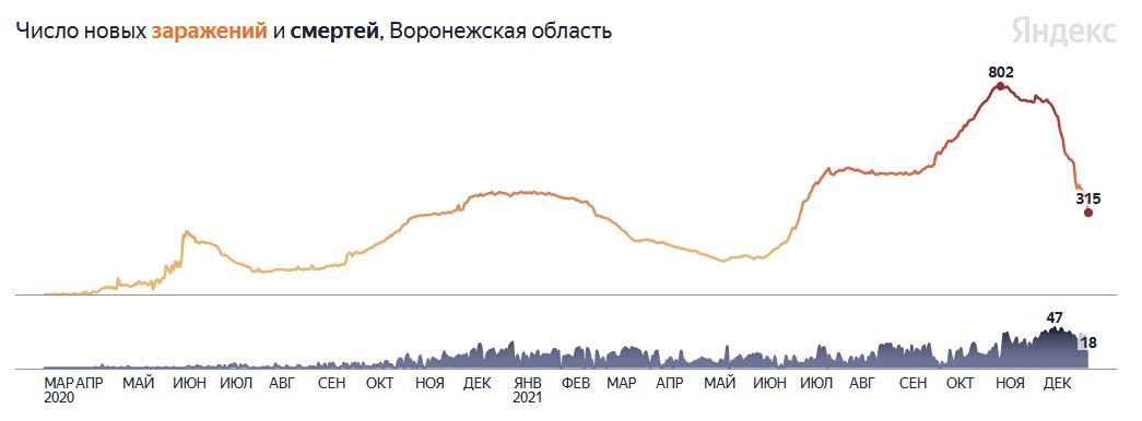 315 случаев заболевания ковидом выявили за последние сутки в Воронежской области, сообщает федеральный оперштаб сегодня, 29 декабря. Это на 67 случаев меньше, чем вчера.