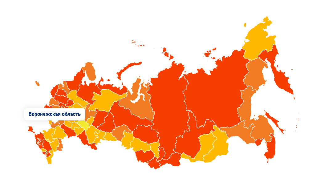 При этом в октябре Воронежскую область отметили красным цветом на тепловой карте заболеваемости COVID-19. Это говорило о том, что в регионе самая опасная степень распространения вируса. В пятую волну ковида Воронежскую область отметили оранжевым цветом.