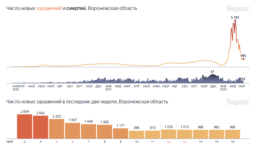 С начала пандемии инфекция унесла жизни 7 943 воронежцев. Учитываются только те, у кого ковид был подтверждён тестом.