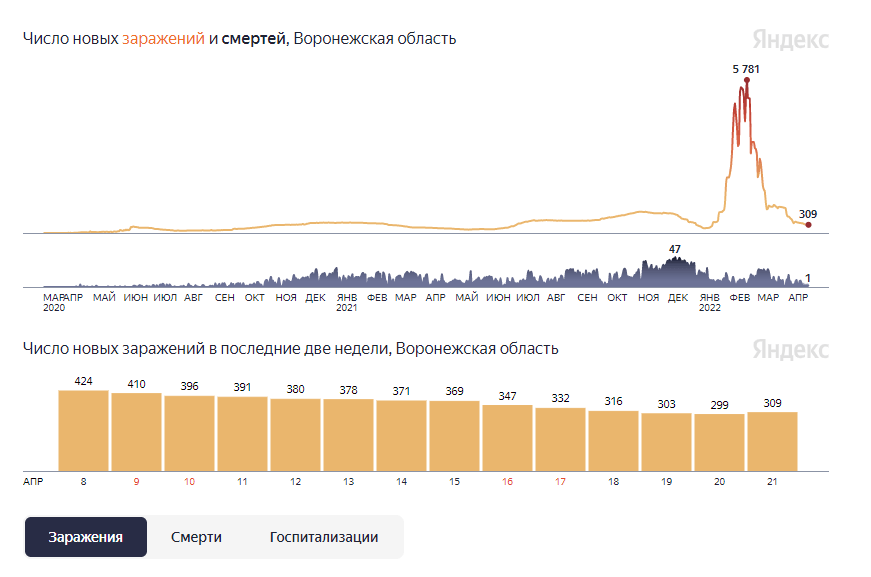 При этом вчера Воронежская область достигла показателей, которые были перед пиком пятой волны коронавируса. Общее число заражённых — 377 898.