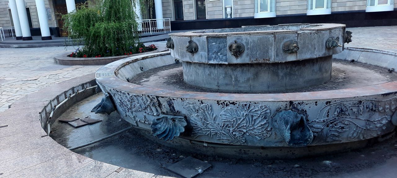 Задняя часть театра славится своими скульптурными композициями, в которых запечатлены персонажи известных и любимых всеми сказок: старик из «Сказки о рыбаке и рыбке», Царь Дадон из «Сказки о золотом петушке» и другие. К сожалению, практически все скульптурные объекты у театра подвергались вандализму или стали жертвами охотников за металлом. Некоторые отчаянные люди даже не боятся залезать на крышу ради того, чтобы урвать оттуда кусочек металла. Да и 250-килограммовая Дюймовочка не раз была жертвой покушения вандалов.