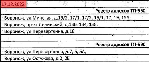 В некоторых жилых домах на улицах Минской, Перевёрткина, Остужева и на Ленинском проспекте сегодня пройдут плановые отключения электричества, которые «Воронежская горэлектросеть» проводит для модернизации сети. Свет пропадает не более чем на три часа в период с 8:00 до 17:00. Приводим перечень домов, которые останутся без света.