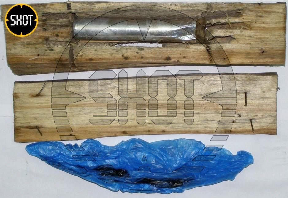 Взрывное устройство, заложенное в полено. Фото: Shot.