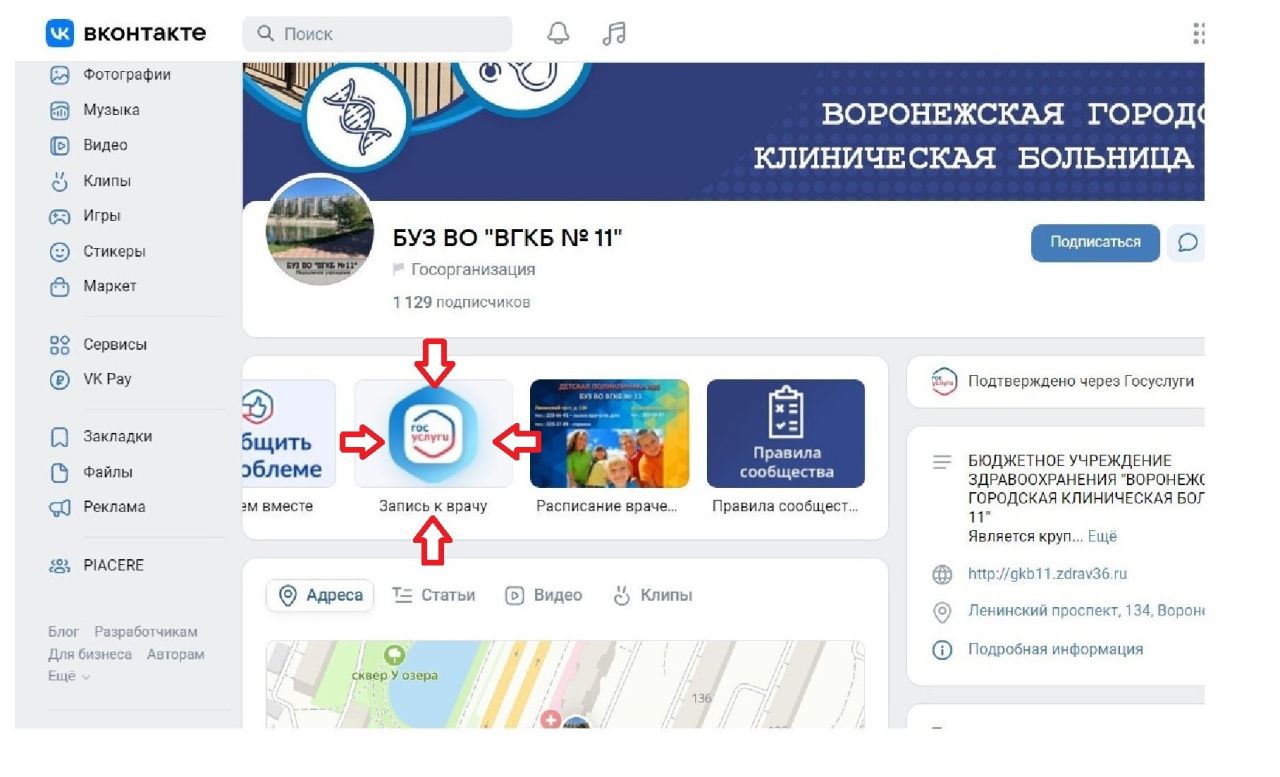 Для записи нужно перейти в официальное сообщество медчреждения, выбрать в меню сообщества «Запись к врачу» и авторизироваться через «Госуслуги».