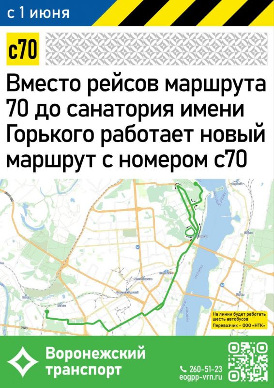 Автобус будет курсировать под № с70. Он будет следовать по бывшему маршруту №70, только теперь ещё свяжет микрорайон Первое Мая и санаторий имени Горького.