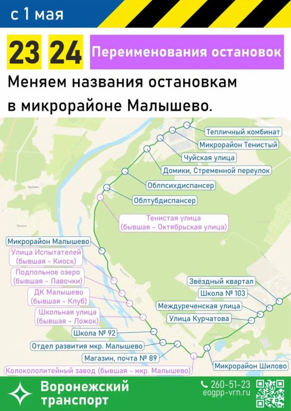 Теперь остановки получат названия «Колокололитейный завод», «улица Школьная», «ДК «Малышево», «Озеро Подпольное», «улица Испытателей» и «улица Тенистая».
